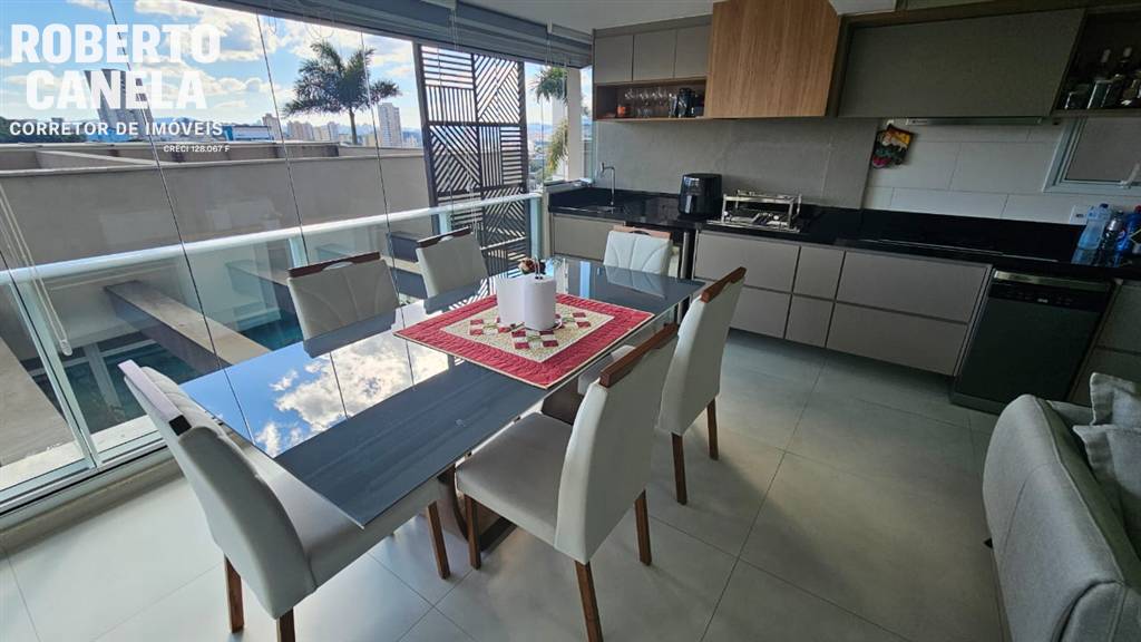 Possui varanda gourmet com churrasqueira e acabamento de alto padrão.