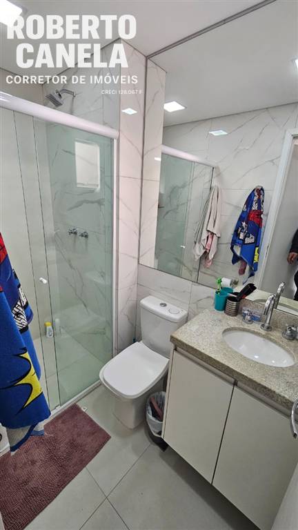Com 96 m², o imóvel conta com três suítes, lavabo, área de serviço independente, duas excelentes vagas de garagem e depósito.
