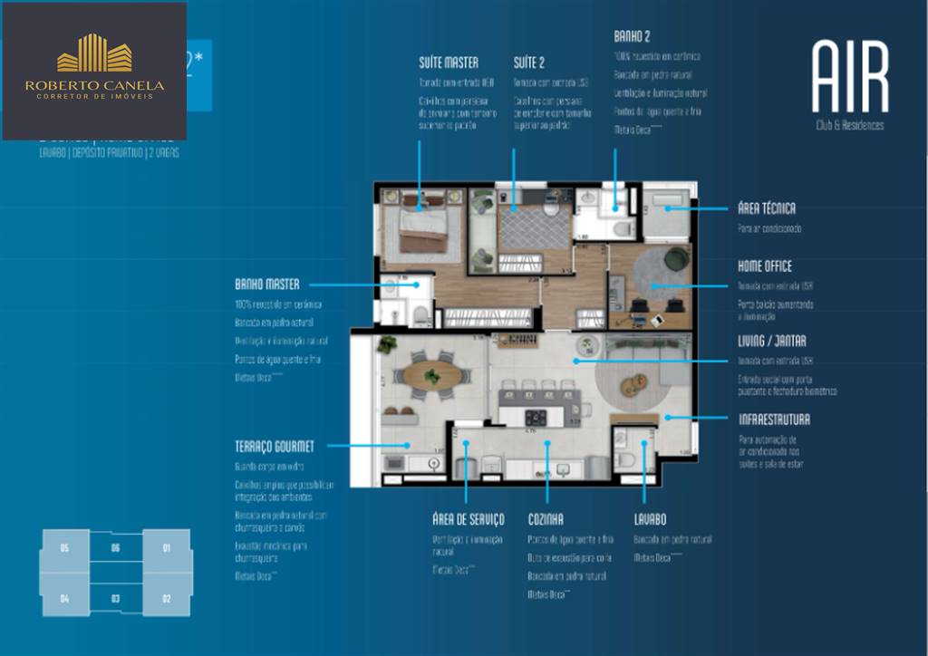 Air Club & Residences, o lugar que vai mudar o seu conceito de viver. Com áreas de lazer e apartamentos sem igual. De sports bar à garage band, para cada conquista sua, existe um espaço para receber amigos e família e celebrar. Piscinas de resort sempre a disposição na sua nova casa. Ambientes fora do comum para dividir momentos únicos com quem você mais ama. Seus pets também vão amar a vida no Air Club & Residences. Um novo conceito de diversão para todas as idades. Próximo de Hospitais, Drogarias, Restaurantes, Padaria, Escolas e muito mais.