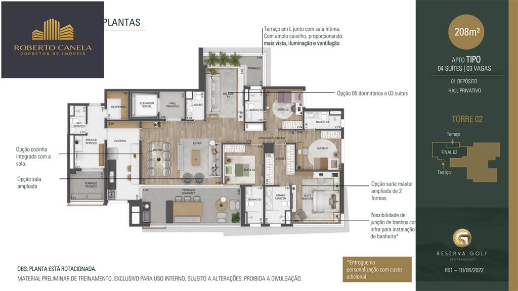 Apartamento de 208m² com 4 suítes + 3 vagas. RESERVA GOLF RESIDENCES