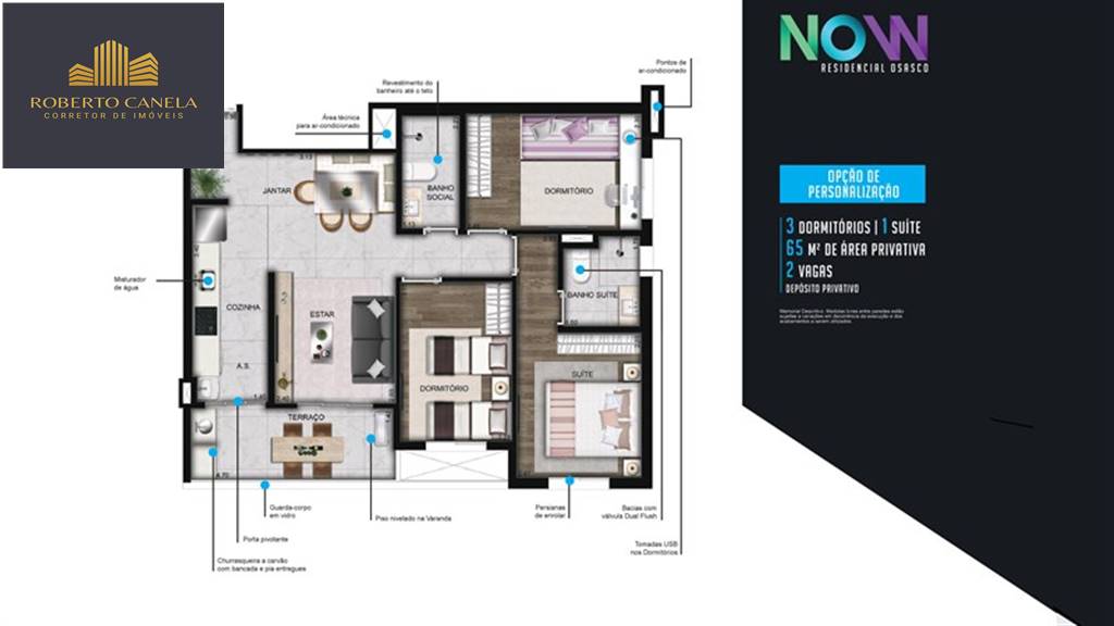 Now Rochdale. Apartamento de 65m² com 2 dormitórios sendo 1 suíte, 2 vagas de garagem. + depósito privativo. Pronto para morar