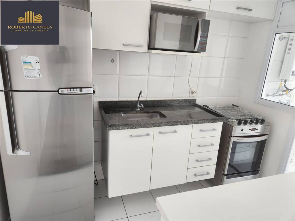 Apartamento de 59m² com 2 dormitórios sendo 1 suíte + 1 vaga de garagem. Cozinha completa, armários na suíte.